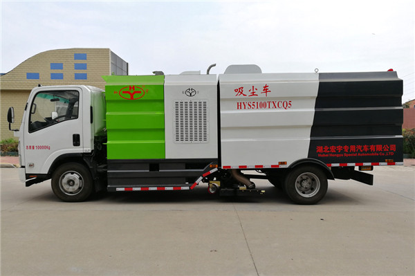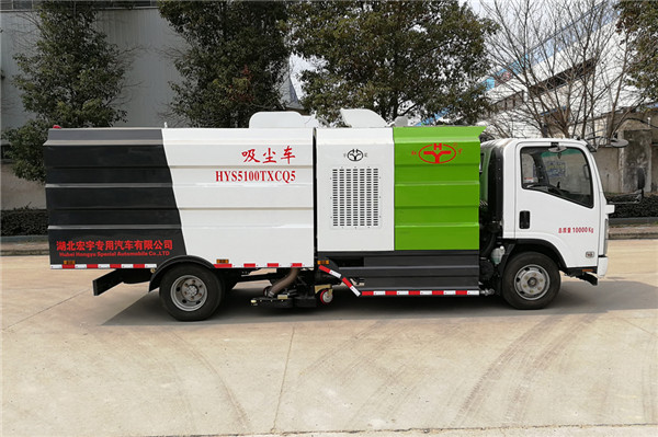 該吸塵車(chē)是采用五十鈴國(guó)五二類(lèi)原廠汽車(chē)底盤(pán)改裝,加裝副發(fā)動(dòng)機(jī)、風(fēng)機(jī)、清水箱、垃圾箱、中置吸盤(pán),工作視頻探頭,自動(dòng)脈沖清理功能,液壓系統(tǒng)、專(zhuān)用裝置電控系統(tǒng)和副車(chē)架等改裝而成。