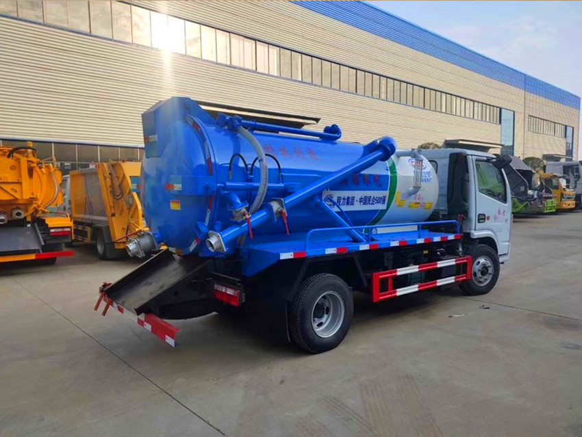 東風(fēng)5噸吸污車該車裝有取力器,真空泵,高壓水泵等;罐體總長(mm):3600,其中水罐前下部用于安裝高壓泵,水罐罐體有效容積:1.92立方米,罐體外形尺寸(長×直徑)(mm):1800×1200;吸污罐罐體有效容積:1.92立方米,罐體外形尺寸(長×直徑)(mm):1800×1200;水罐和吸污罐為兩個獨(dú)立罐體,兩罐不能同時滿載;防護(hù)材料:Q235A碳鋼,連接方式:左右側(cè)面防護(hù)以及后部防護(hù)采用焊接連接,后防護(hù)斷面尺寸(mm):100×50,后部防護(hù)離地高度(mm):350;整車長/軸距/后懸對應(yīng)關(guān)系為(mm):5995/3308/1632,5915/2950/1910,5510/2700/1755; 隨底盤選裝駕駛室,ABS型號/廠家:ABS/ASR-12V-4S/4M/襄陽東風(fēng)隆誠機(jī)械有限責(zé)任公司,選裝清洗罐體和吸污罐體功能高度集成的圖片,擴(kuò)展左右側(cè)以及后部樣式。