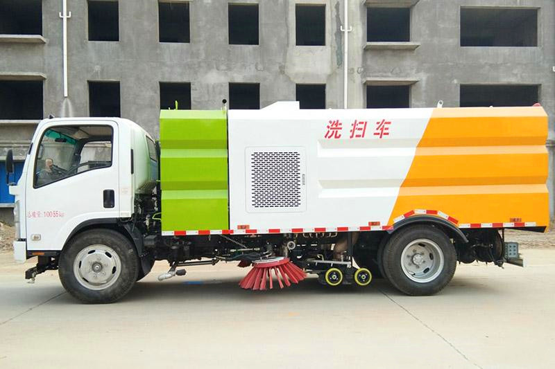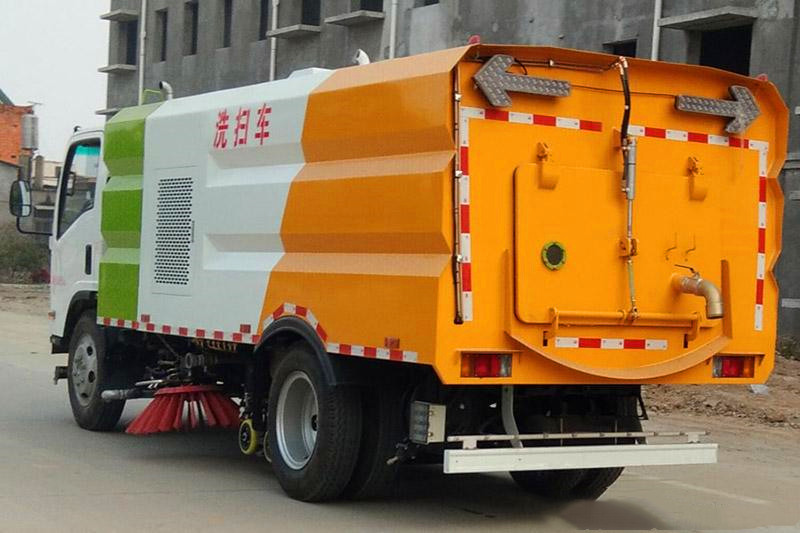 8、五十鈴700P洗掃車|五十鈴5噸多功能洗掃車配備高低兩套水路系統(tǒng),可實現(xiàn)高壓沖洗和低壓灑水的功能。