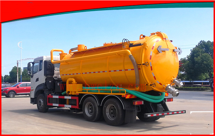 上裝為一體式罐體結構,分污水罐和清水罐兩部分,采用優(yōu)質碳鋼制作而成,罐體厚度為8毫米,罐體內部均安裝有爬梯,底部焊有1.6米左右的不銹鋼底板,罐體外部也安裝有爬梯。清水罐頂部安裝有排氣閥,底部安裝有排水閥。清洗部分選用350大流量高壓泵,雙向進水,帶氣吹水功能,高壓泵安裝有過濾網(wǎng),標配100米高壓管,后封頭8毫米厚,尾部液壓絞盤可旋轉180度,加裝有節(jié)流閥,用于控制快慢。整車上裝搭配有420馬力副發(fā)動機,標配大型水循環(huán)泵,搭配不銹鋼水循環(huán)泵水箱,吸污管標配長度為10米。后封頭標配有6寸球閥1個,4寸球閥3個,直徑600mm的液壓開啟蓋,方便排放污水,罐體帶液壓舉升功能,排污快捷方便。