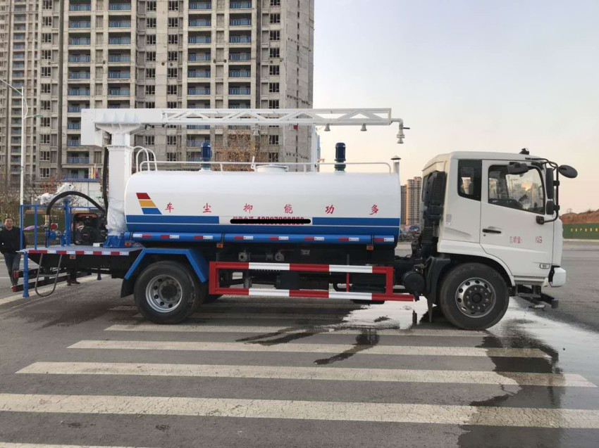 多功能抑塵車主要結(jié)構(gòu)是在行走機(jī)構(gòu)上加裝方型大容積水罐、高效遠(yuǎn)程霧炮系統(tǒng)、大功率專用自吸自排水泵,中低壓沖洗灑水系統(tǒng)、綠化灑水高炮(可選裝自動灑水高炮,在罐體前端)等等而改裝組成。、罐體容積大(10-12立方),免征產(chǎn)品。