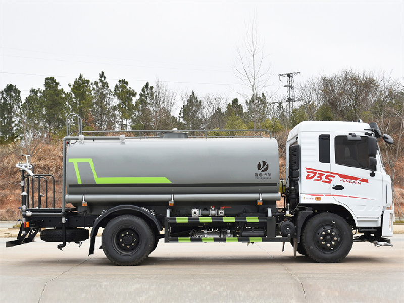 東風12噸灑水車產品標配前噴(鴨嘴)、后沖、后灑、側噴、后置式工作 平臺,平臺上配置綠化水炮(可 360°旋轉,既可以調成柱狀,也可 以調成霧狀,更可以調成直沖狀、大雨、中雨、小雨、毛毛雨),配 備優(yōu)質大功率專用灑水泵(可自吸自排,可從河里或池塘抽水到罐體), 取力器,雜物過濾網(wǎng),消防接口,自流球閥系統(tǒng)、取力器、球閥、濾網(wǎng) 均為國家標準產品,主管道加粗,法蘭墊、法蘭盤加厚,大通徑球閥。 整體具備性能優(yōu)良安全可靠、效率高、流量大、維修方便等特點。